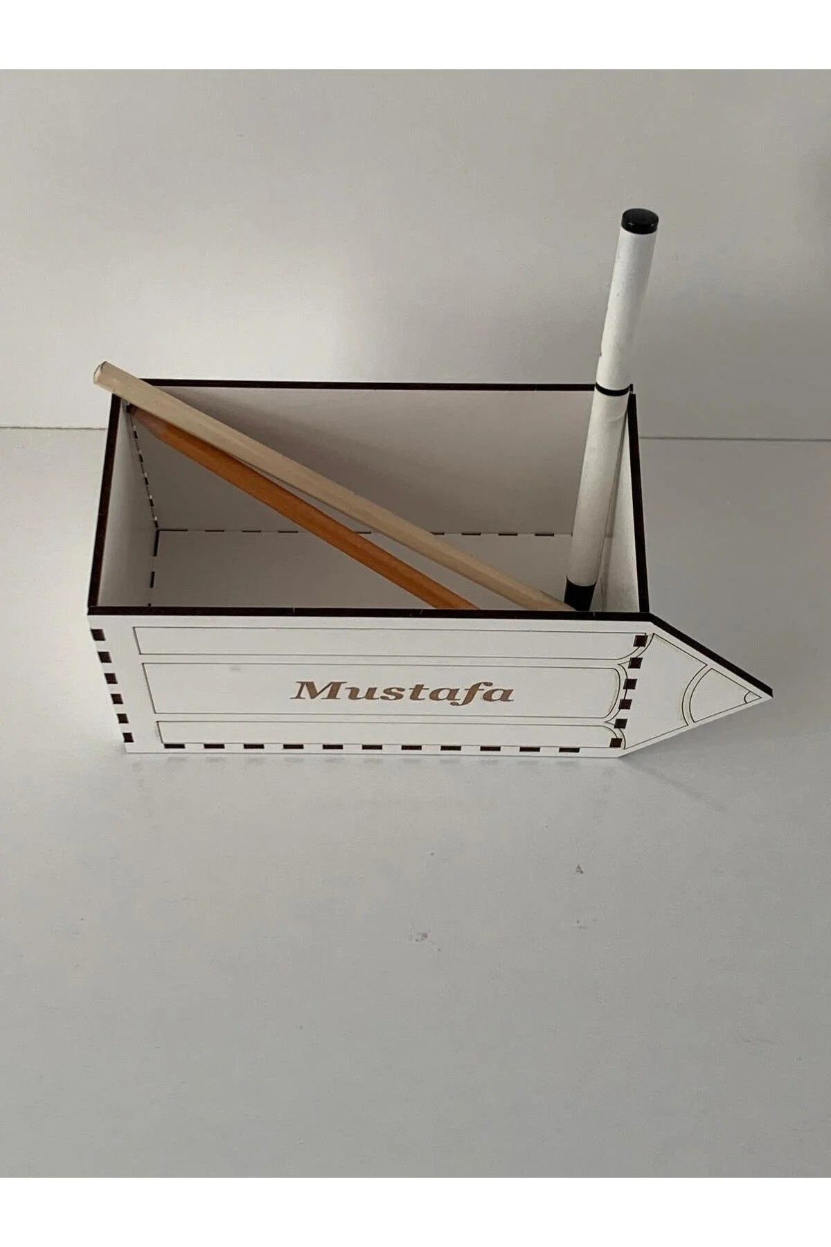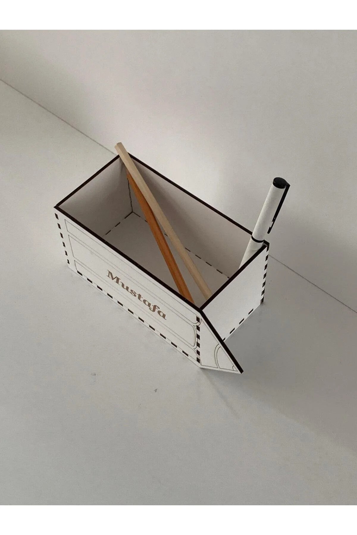 Kişiye özel isim yazılabilen ahşap kalemlik.