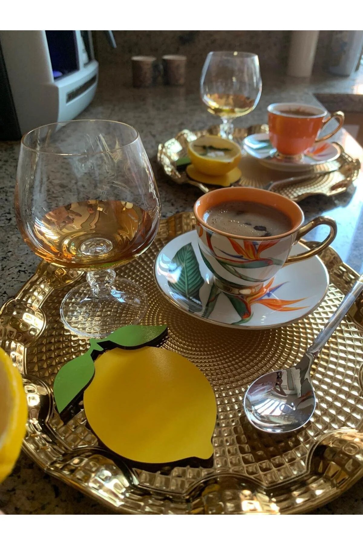 Limon Motifli Kahve Sunumluk Limon Tatlısı Sunumluğu Altlığı (2’li)