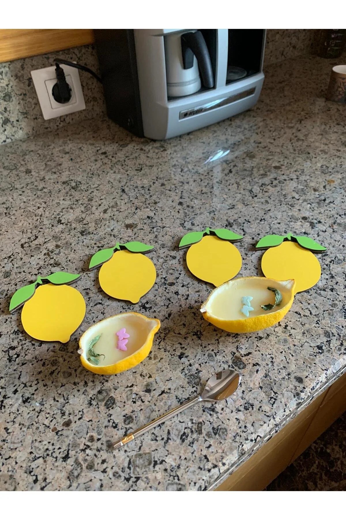 Limon Motifli Kahve Sunumluk Limon Tatlısı Sunumluğu Altlığı (6’lı)