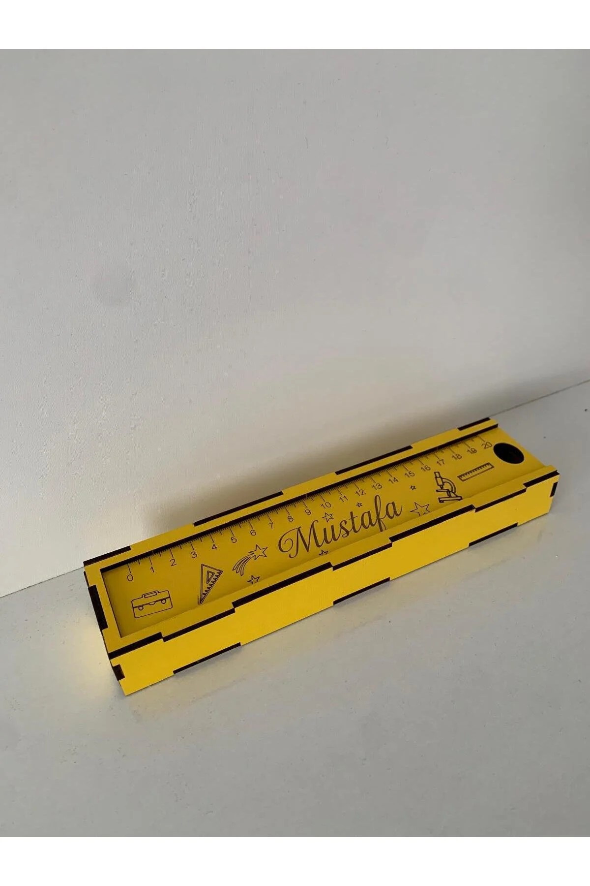 Kişiye özel isim yazılabilen kalemlikli cetvel